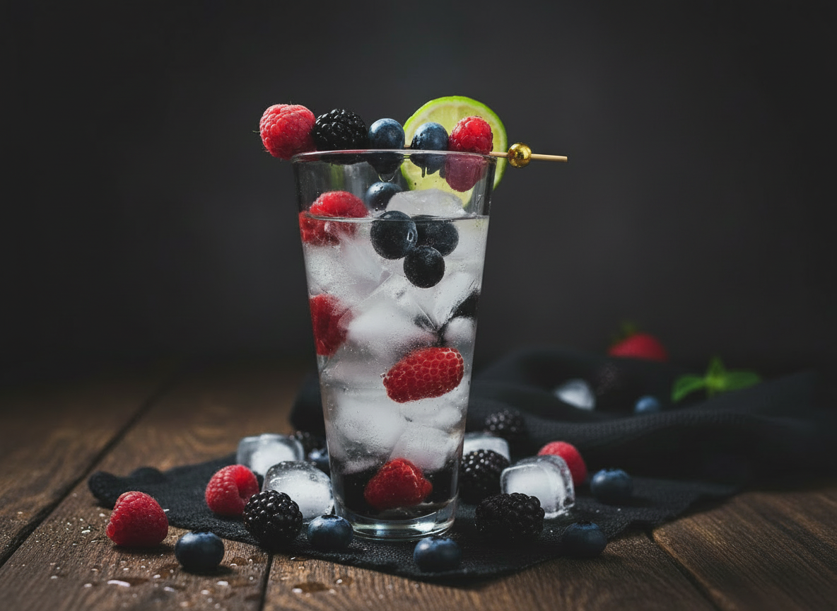 Citrus slices, berries, cucumbers, fresh herbs, botanical accents, still and sparkling water options, and seasonally inspired infusion combinations.